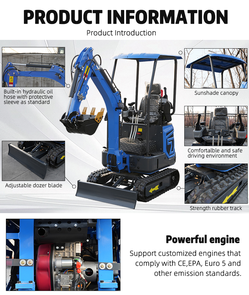 2. Small excavator has obtained CE certification and meets the European Class V and American EPA class 4 emission standards.