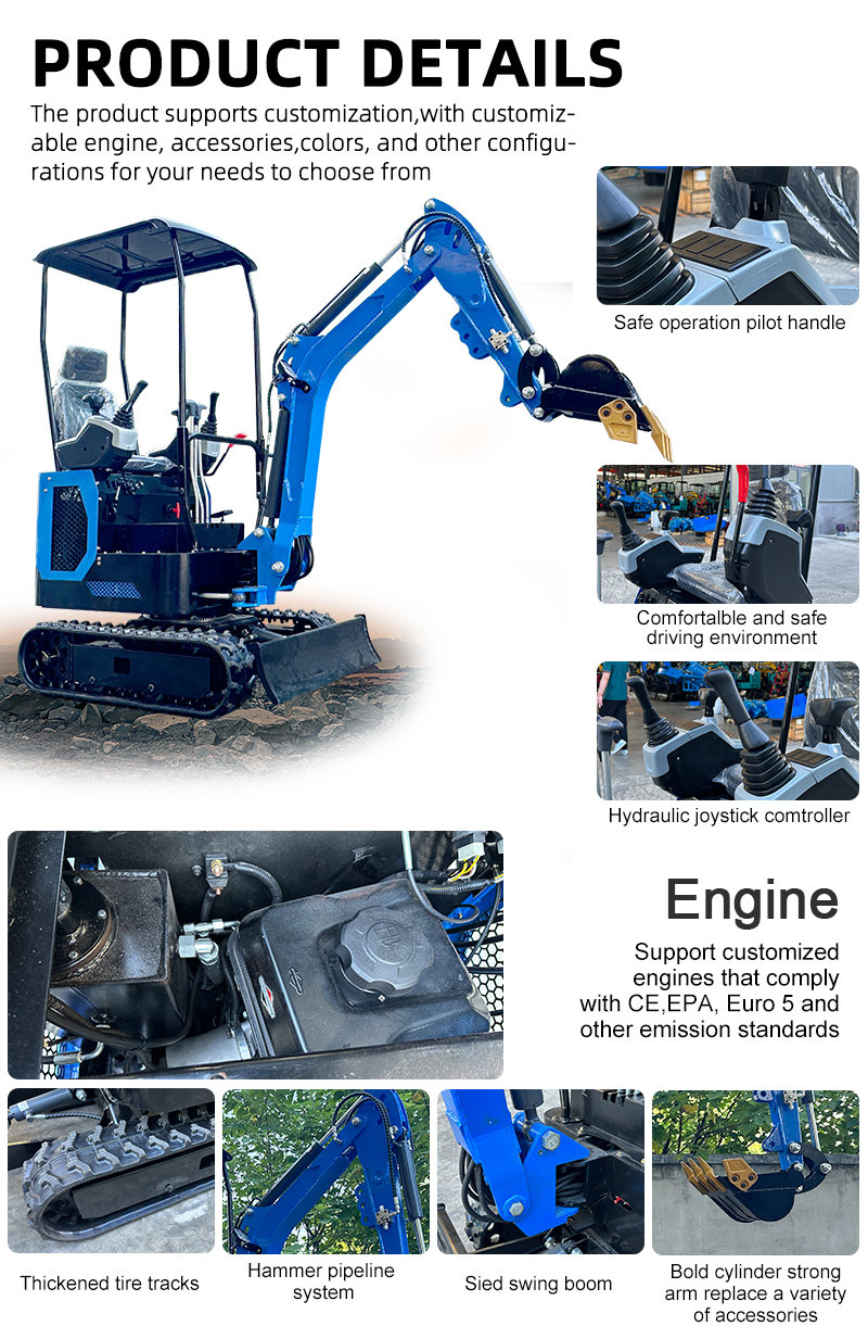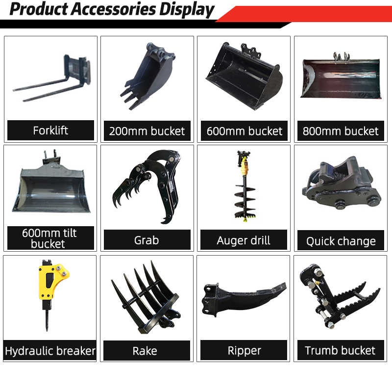 1.This mini excavator is equipped with an internationally renowned multi-valve hydraulic system that ensures coordinated motion, excellent function scalability, superior leveling performance, and better meet the operational requirements of earth moving and crushing tasks.