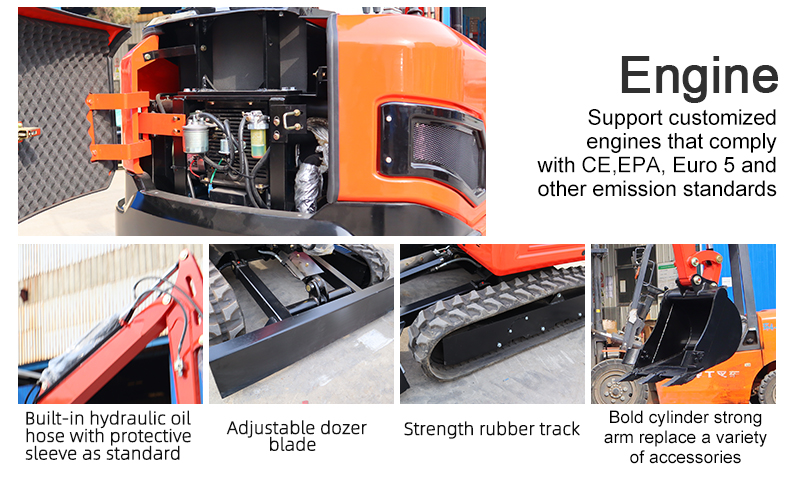 5. The micro-excavator bucket hose is well protected in the boom, and the cylinder is installed on the top. Long service life.