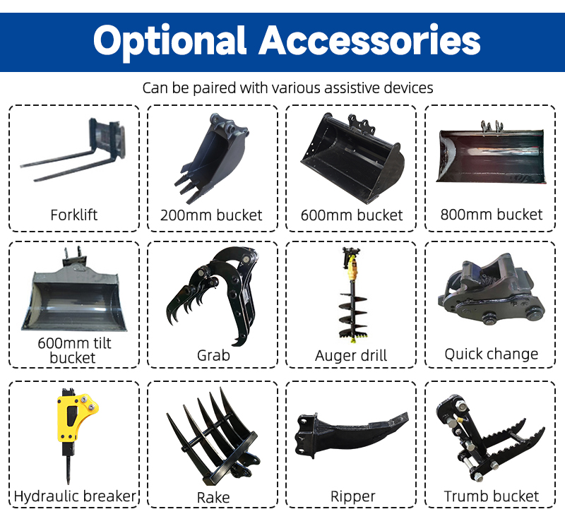 2. Quick-change interface: Standardly equipped with a hydraulic quick-change device, it enables quick switching of crushers, hydraulic shears, spiral drills, etc., meeting diverse needs in municipal engineering (such as curbstone installation, tree hole excavation).