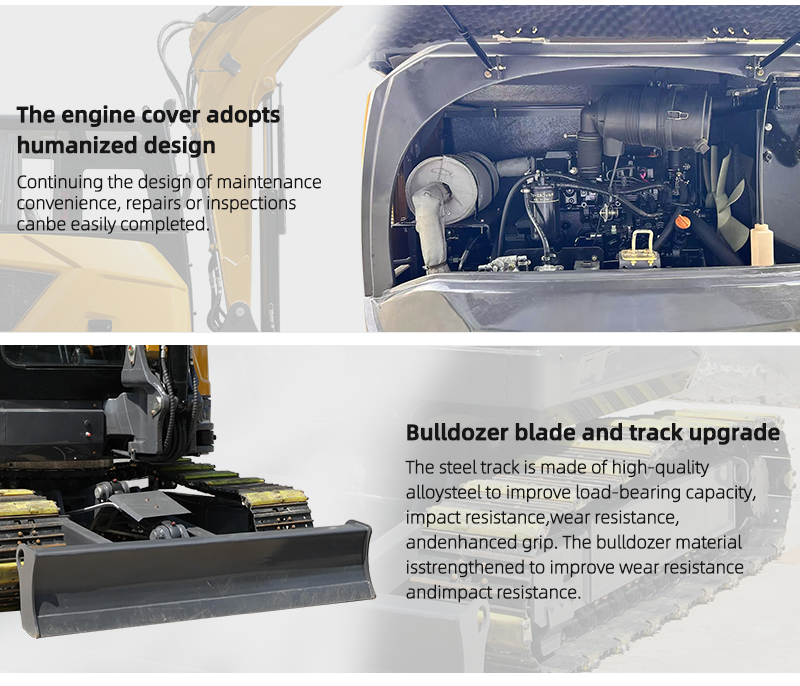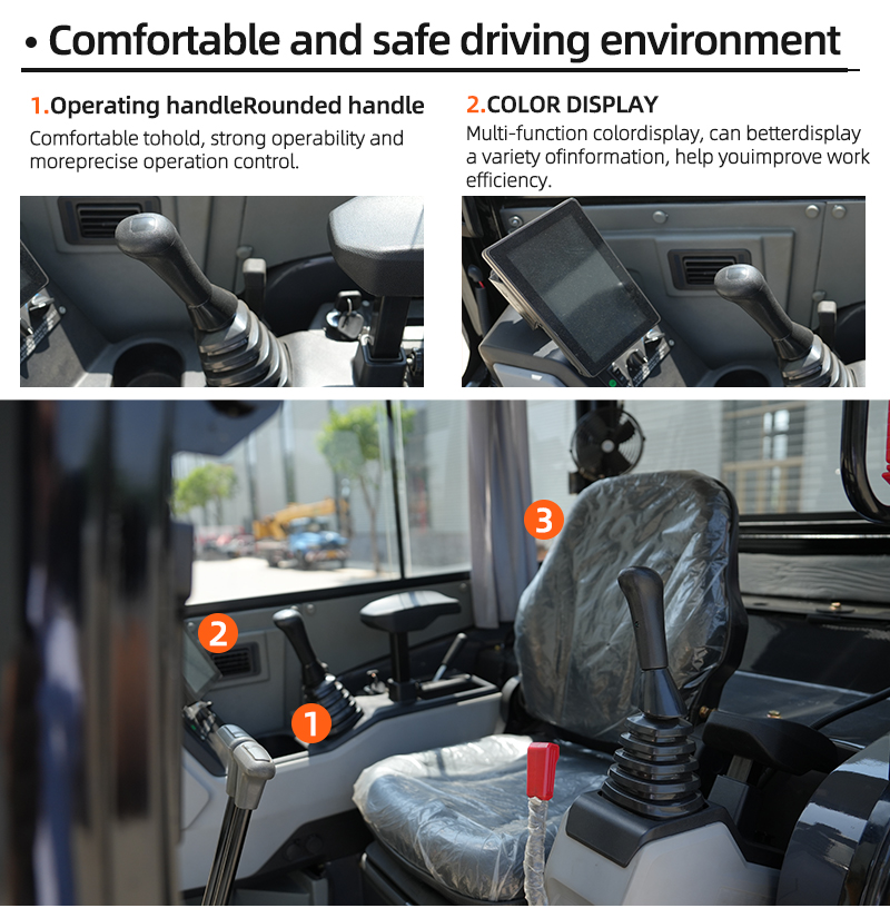 3. The large arm side swing is the first in China, with a round tail design that conforms to foreign aesthetic views. The base of the upper arm and the front fork of the upper arm are both molded and cast as a whole. The large display screen in the cab and the armrest box are molded as a whole (high-end, atmospheric, and high-end).