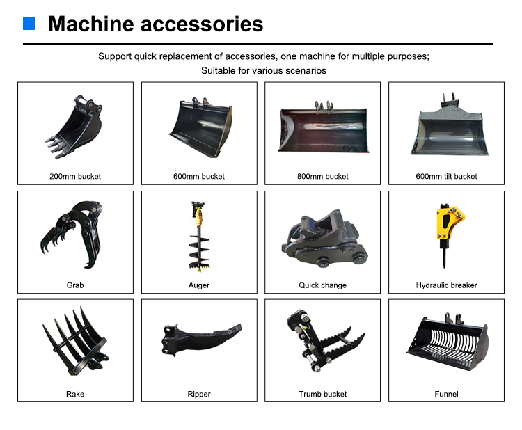 2.Standard equipment includes crushing pipelines, which can be customized and modified with various accessories such as crushing hammers, release hands, wood grabbers, spiral drills, etc.