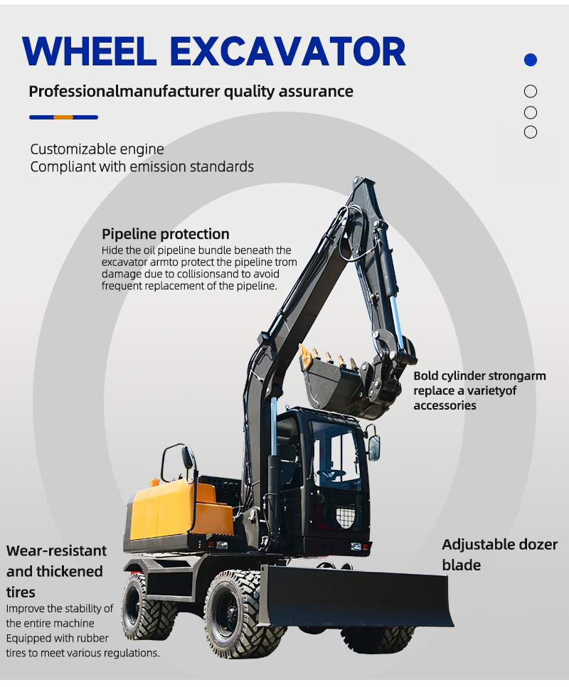 1. Rapid cycle: Equipped with a load-sensitive hydraulic system, the digging cycle time of the bucket is ≤ 5 seconds (about 6-8 seconds for crawler type). It is suitable for high-frequency operations such as trench backfilling and bulk material loading.