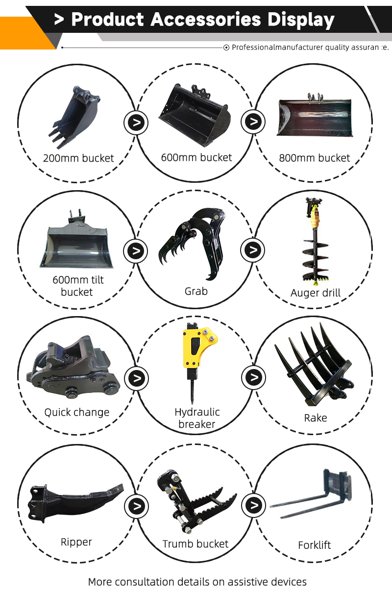 4. Quick tool change, multi-functional switching: 3-second hydraulic quick change, can complete multiple processes such as trenching → crushing → leveling in one day (for municipal pipeline construction).